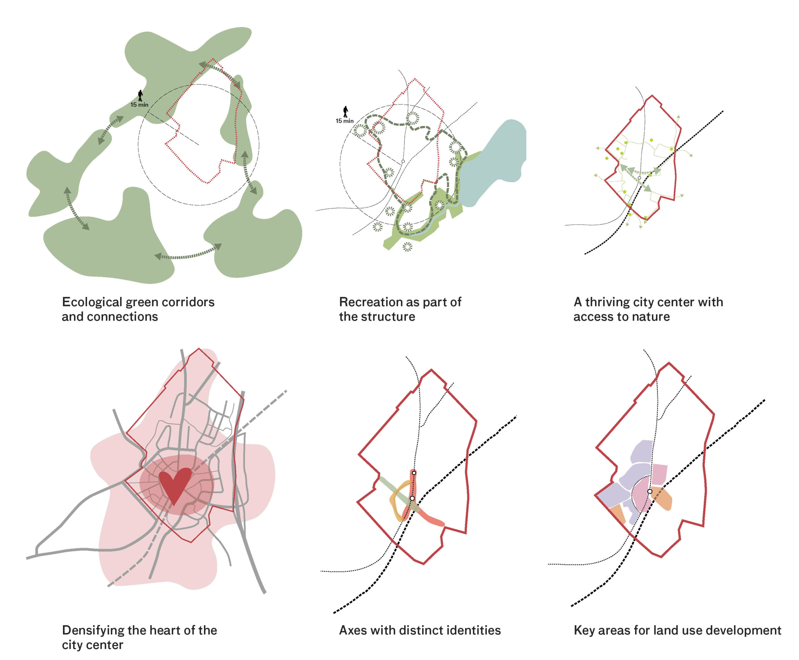 The vision for Nummela’s centre provided an opportunity to explore how urban centres might evolve through a compact scenario exercise.The project prioritized sustainable solutions while aiming to enhance the attractiveness of Nummela’s centre. It involved input not only from experts, but local residents and stakeholders. The process began with an analysis of the existing urban structure, followed by a scenario exercise on the future of city centres. The resulting urban strategies focused on enhancing ecological and recreational green corridors and connections, creating a vibrant city centre with immediate access to nature, designing a densified urban core defined by clear and distinct axes, and identifying key areas for future land use development.